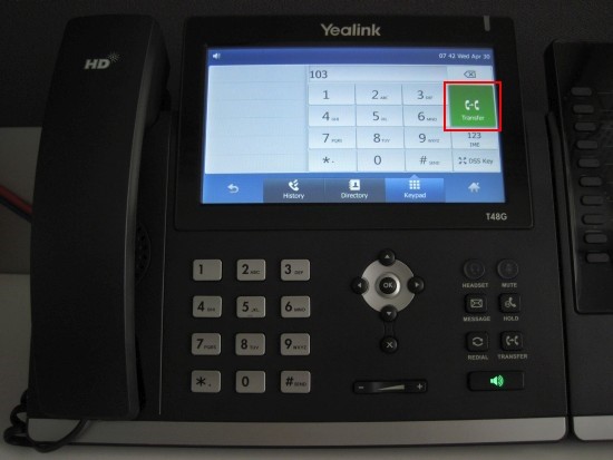 In this example we will demonstrate how to perform a blind and attended (consultative) transfer using a Yealink T48. The procedure stands for Yealink T46.