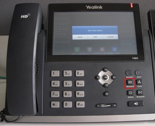 - To check your voicemail, press the “Message” button, or press the “View” button on the touch screen (T48G) and follow the voice prompts.